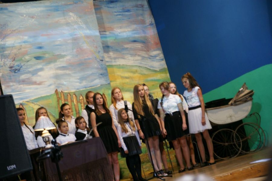 Uczniowie oraz nauczyciele przygotowali krótkie przedstawienie o bohaterce wieczoru Annie Wróbel.