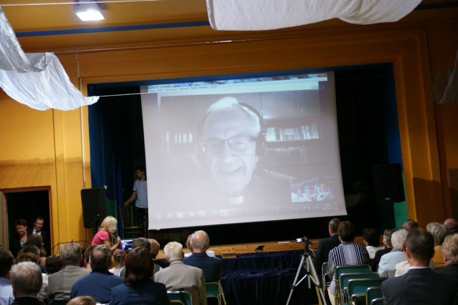 Chociaż autora książki z powodu choroby nie było wśród nas, połączyliśmy się z osobą księdza Kelera za pomocą „skepa”. Całe wydarzenie związane z promocją książki ksiądz obserwował ze swojego mieszkania w Warszawie ,a następnie zwrócił się do nas ze swoim słowem promującym książkę.